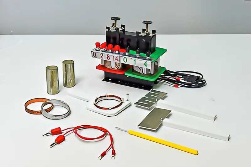 Прибор предназначен для демонстрации устройства и действия трансформатора, а также для демонстрации опытов по электричеству на уроках физики.