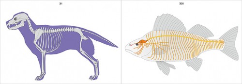 Пособие включает в себя 10 двусторонних карточек (№ Э1–Э20), на которых изображено строение различных систем органов позвоночных животных. Карточки демонстрируют эволюцию каждой системы органов, и все системы органов одного животного. Для обозначения различных систем органов применено цветовое кодирование.