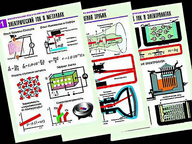Комплект таблиц "Электродинамика. Ток в различных средах" (8 таблиц, формат А1, ламинированные)