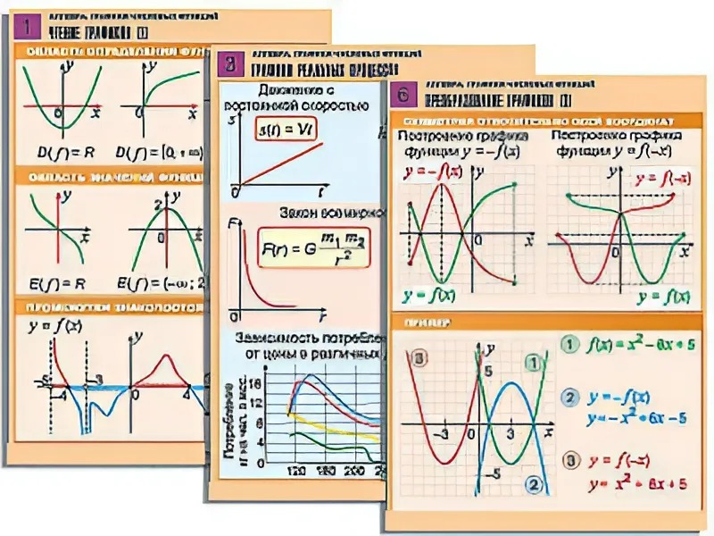 Комплект таблиц по алгебре "Алгебра. Графики числовых функций" (6 таблиц, формат А1, ламинированные)