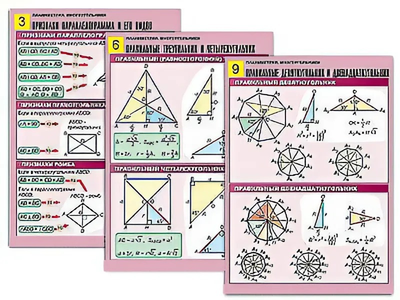 Комплект таблиц по геометрии "Планиметрия. Многоугольники" (10 таблиц, формат А1, ламинированные) - fgospostavki.ru - Иркутск