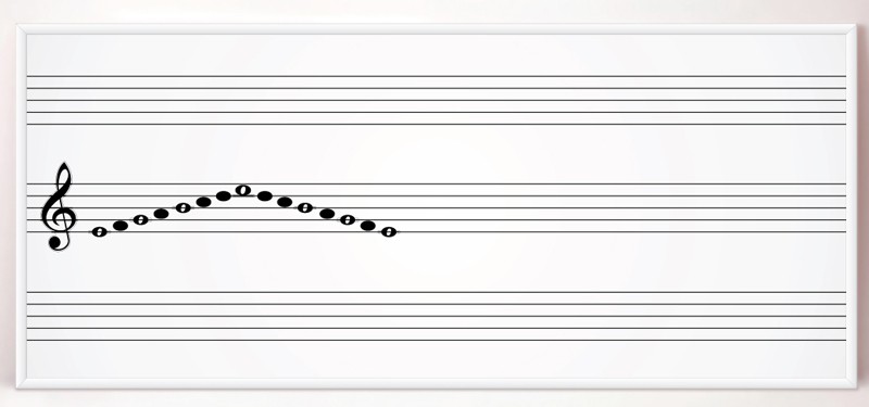 Настенная магнитно-маркерная доска с нотным станом и знаками музыкальной нотации. Вариант 2