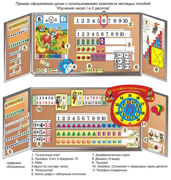 Комплект таблиц "Изучение чисел 1-го и 2-го десятка" (11 таблиц и демонстрационных пособий)