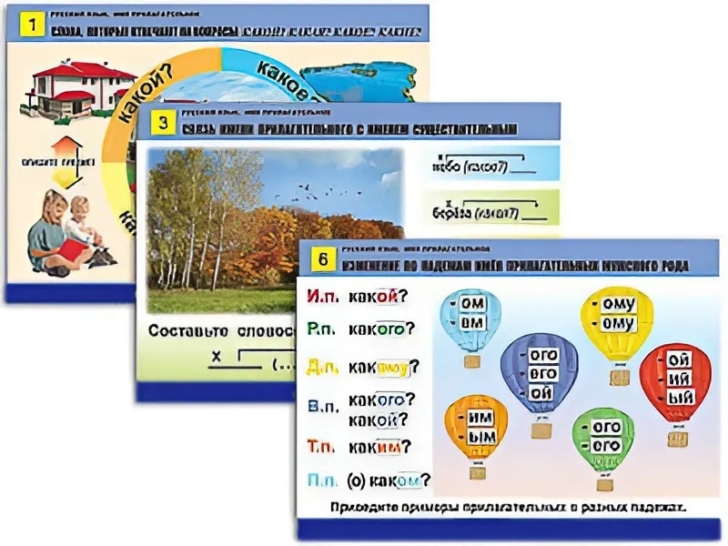 Главная Каталог Демонстрационные учебно-наглядные пособия Кабинет начальной школы Комплект таблиц "Русский язык. Имя прилагательное" (12 таблиц, формат А1, ламинированные)