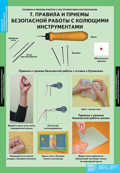 - Правила и приемы безопасной работы с колющими инструментами.