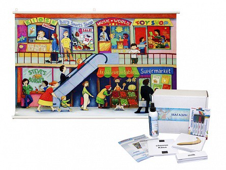 Магнитно-маркерный ситуационный плакат "Магазин" с набором магнитных карточек + методические рекомендации (иностранный язык) - fgospostavki.ru - Иркутск