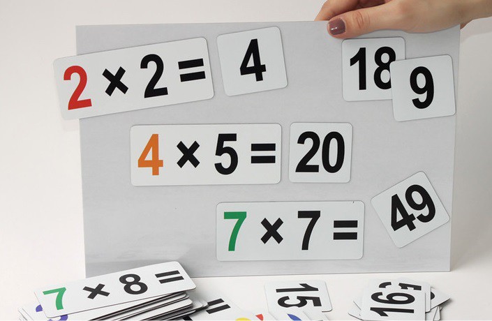 Мы предлагаем задействовать в изучении таблицы умножения ещё и тактильные ощущения, которые играют важную роль в познании мира ребёнком. Мы уверены, что детям понравится примагничивать карточки с примерами и ответами из таблицы умножения к классной доске. Их пальцы вместе с памятью, логикой и сообразительностью обязательно согреют гранит науки!
