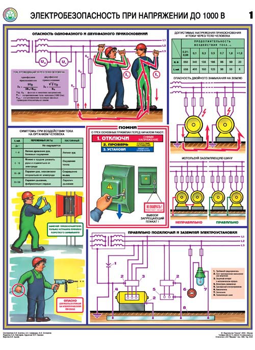 Комплект плакатов "Электробезопасность при напряжении до 1000 В"