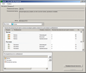 Многоуровневая игра-викторина содержит более 130 вопросов по строению животной и растительной клеток, растениям и анатомии человека, распределенные по трем уровням сложности — «Начинающий», «Опытный» и «Профессионал». Помогает в увлекательной форме провести проверку знаний по биологии.