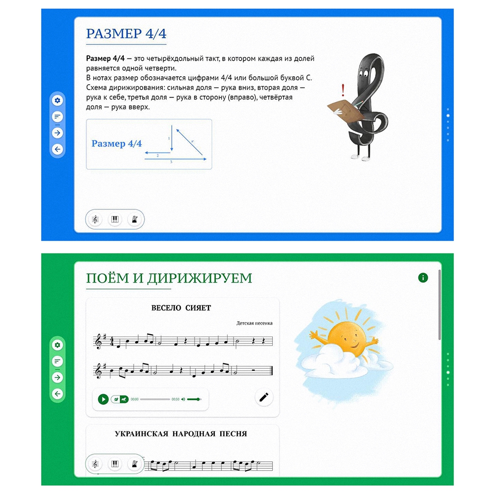 - обучающий материал (тексты, ноты, иллюстрации, аудиофрагменты);