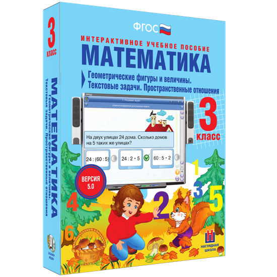 Пособие можно использовать с любыми учебниками, входящими в Федеральный перечень. Интерактивное учебное пособие «Математика 3 класс. Геометрические фигуры и величины. Текстовые задачи. Пространственные отношения» содержит все темы годового учебного курса по математике. В каждую тему включены тестовые контрольные задания, интерактивные упражнения на усвоение теоретического материала и на отработку практических навыков. В пособии использованы следующие медиаобъекты: анимации, аудиосопровождение заданий, интерактивные схемы, работа с виртуальными инструментами, 3-D модели, установление соответствия (соединение), последовательности, обобщение, классификация объектов, кроссворды, интерактивные таблица умножения.