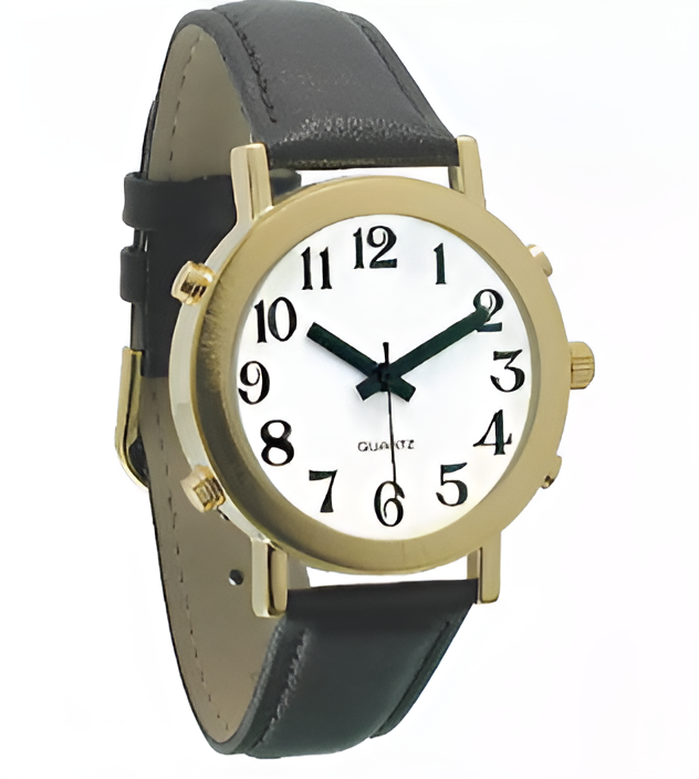 Часы для слабовидящих людей с белым циферблатом на кожаном ремешке - fgospostavki.ru - Иркутск