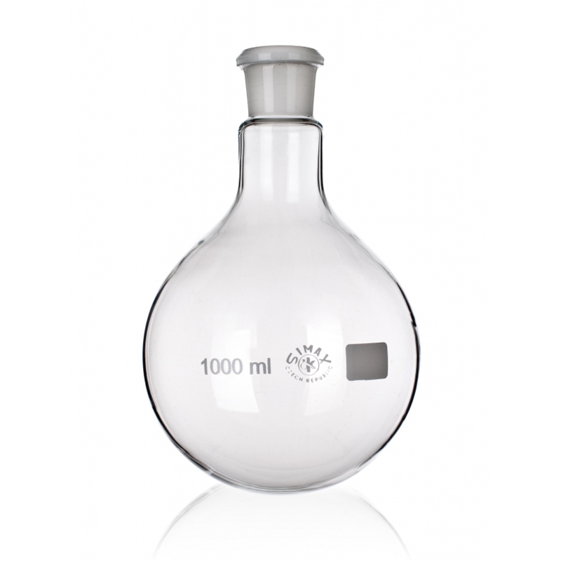 Колба круглодонная 1000 мл предназначена для нагревания растворов в различных химических процессах, связанных с перегонкой веществ, в ходе выполнения лабораторных и демонстрационных опытов в рамках изучения курса химии.