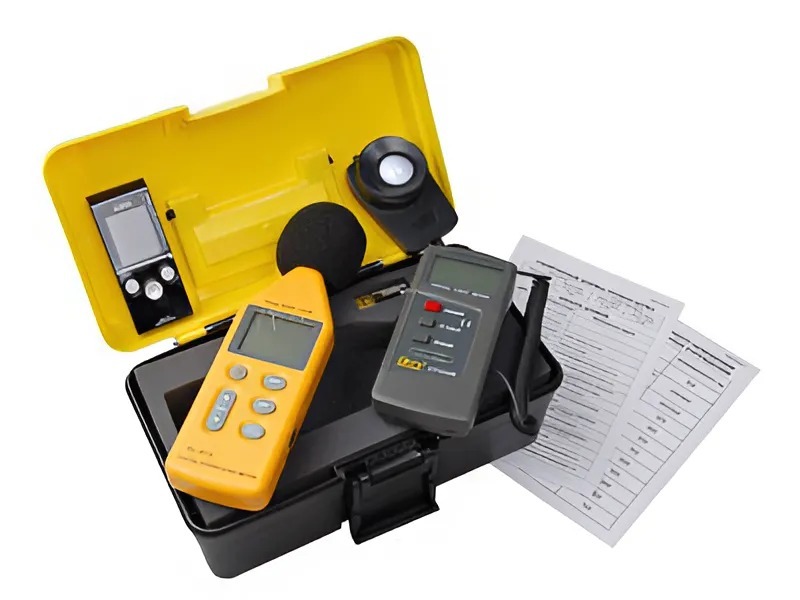Комплект приборов позволяет проводить измерения уровня экологически значимых характеристик: освещенности, шума и радиационного фона. Для оценки полученных данных в карточке 1 приведены нормативы освещения жилых домов и общеобразовательных учреждений, в карточке 2 – допустимые уровни шума в дневное и ночное время, а также шкала шумов, дающая представление об уровне шума от различных источников.