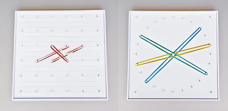 Изделие представляет собой пластиковый математический планшет размером 18х18 см, на одну сторону которого нанесена сетка из выступающих колышков шагом в 3 см, на другую – окружность диаметром 15 см и шагом в 2 см.