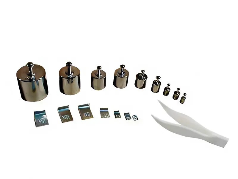 Масса гирь выполнена с точностью не ниже 4-го класса. Гири промаркированы и уложены в персональные ячейки коробки. В набор входит также пинцет для захвата гирь и пластина, прикрывающая мелкие разновесы. Сопровождается руководством по эксплуатации
