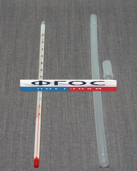Термометр представляет собой стеклянную оцифрованную трубку с впаянным капилляром и баллоном со спиртовым раствором. Точность измерения температуры 1ºС, пределы измерения от -10ºС до +100ºС, цена деления шкалы 1ºС. Применяется при проведении лабораторных работ по калориметрии, удельной теплоемкости воды, температуры кипения различных жидкостей и др. По окончании работы с термометром, его необходимо вложить обратно в футляр (поставляется в комплекте).