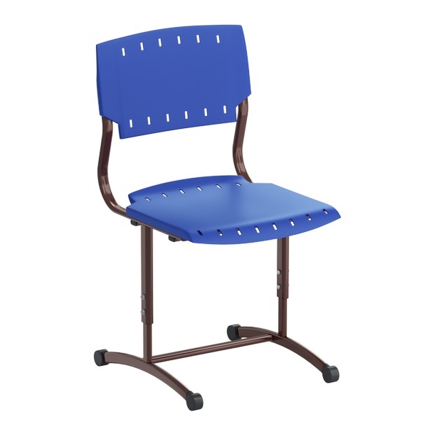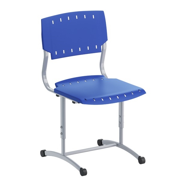 Стул ученический, регулируемый. Сиденье и спинка изготовлены из пластика методом литья. Спинка имеет изгиб в плане, все углы притуплены и имеют радиус закругления (габариты спинки 456х270 мм). Передний край сиденья имеет изгиб, все углы притуплены и имеют радиус закругления (габариты сиденья 456х410мм). Каркас стула состоит из двух подвижных опор и верхнего корпуса. Подвижные опоры выполнены сварными цельнометаллическими из плоскоовальной трубы и покрыты стойким полимерным покрытием. На свободных концах труб установлены заглушки из ударопрочных полимеров не повреждающих поверхность напольных покрытий.