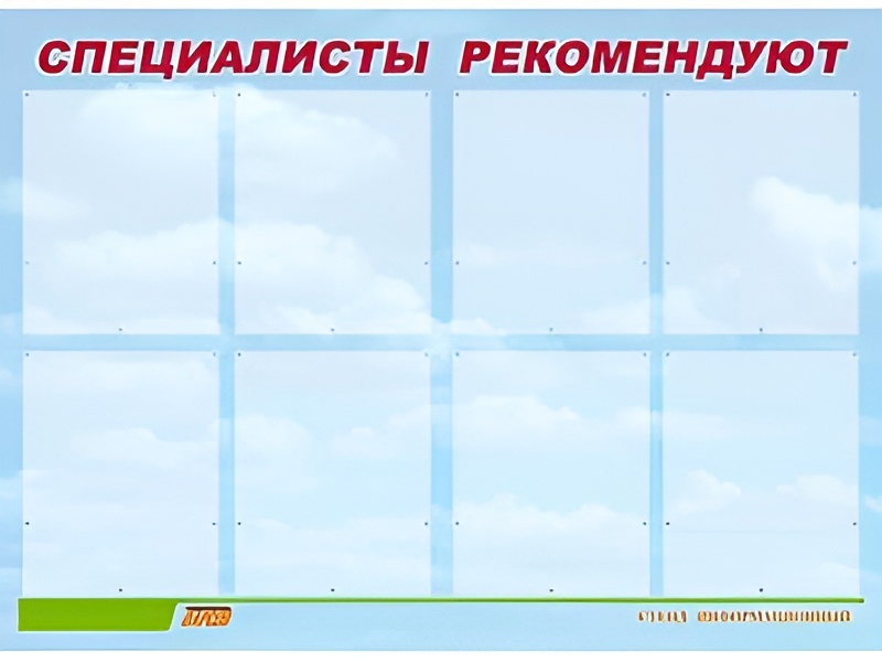 Стенд информационный для ДОУ "Специалисты рекомендуют" (80х110см, 8 карм., алюм. проф.) - fgospostavki.ru - Иркутск