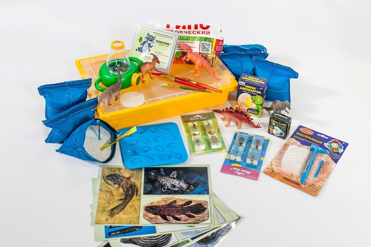 В комплект входят наглядно-дидактические материалы для индивидуальной и групповой работы с детьми дошкольного возраста: модель строения Земли, квестовая игра «Богатства земли», натуральные объекты – наборы «Полезные ископаемые», детская кирка, изготовленная из пластмассы и дерева; карточки с заданиями, видео-контент, журнал проекта. - Комплект № 4 «История планеты в раскопках»