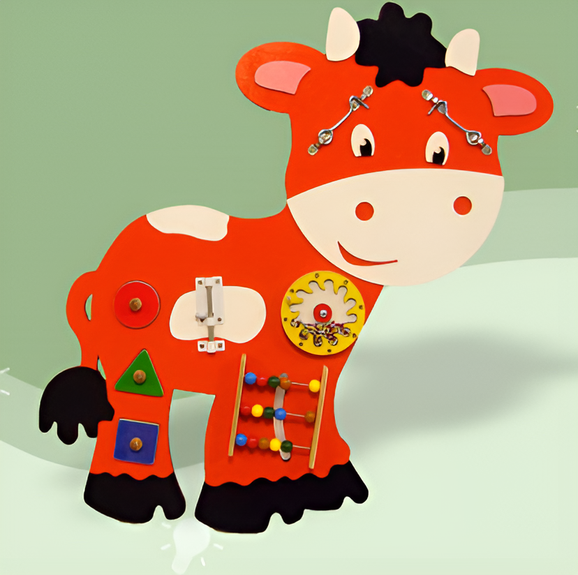 Помогает детям узнавать миров вокруг себя не только зрительно, но и пробуя на ощупь разные поверхности и предметы. Малыш может воображать и фантазировать, играя в Бизиборд в виде бычка. Детки тренируют мышцы рук, отрабатывают ловкие движения и все это благоприятно отражается в дальнейшем на речи. Игрушка идеально подойдет для повышения концентрации внимания и поможет малышу стать более усидчивым.