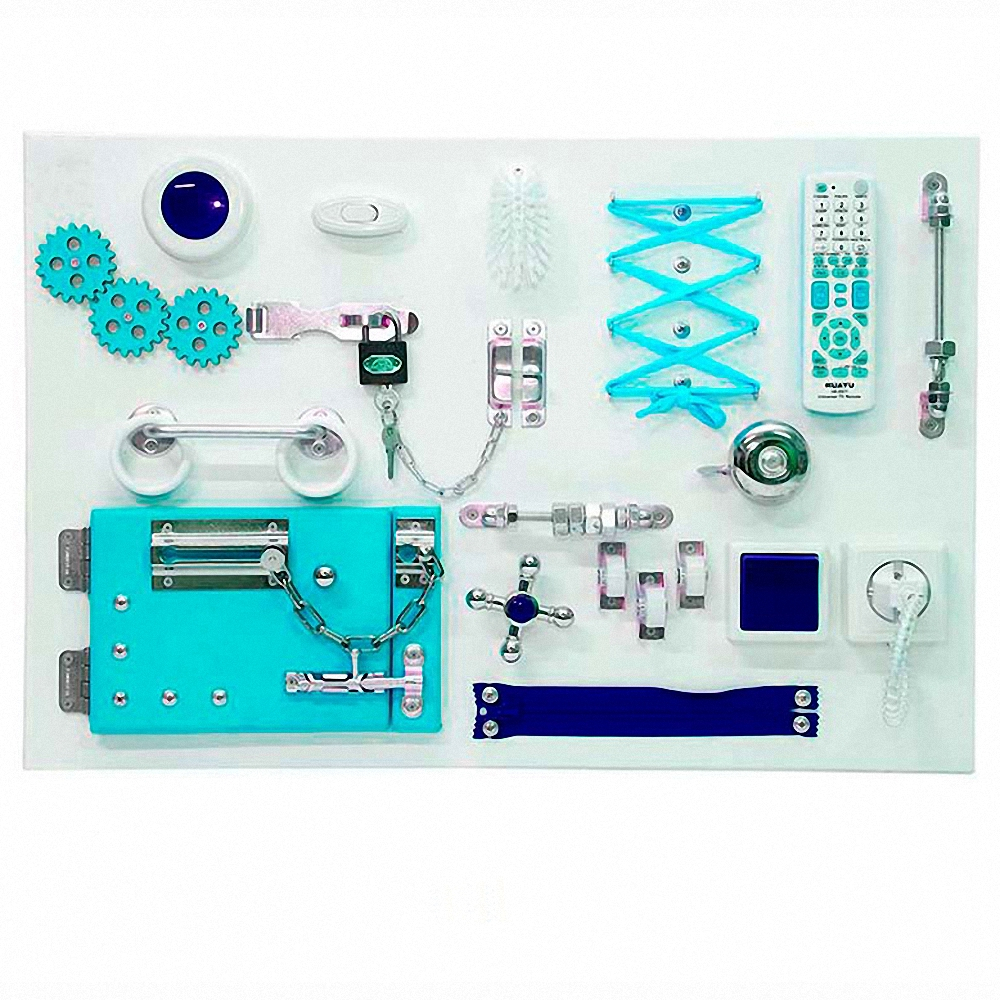 Бизиборд «Чистое небо» - это отличный инструмент для правильного и полноценного развития ребёнка. Перемещение и движение мелких предметов улучшают мелкую моторику, как следствие способствуют развитию речевых навыков. Голубой цвет будет привлекать внимание малыша, но при этом снижать агрессивность. У ребенка появится ощущение защищенности и безопасности. А благодаря множеству различных зон малыш может играть намного дольше. Купить бизиборд можно для домашнего использования и для детских центров, поликлиник и садиков.