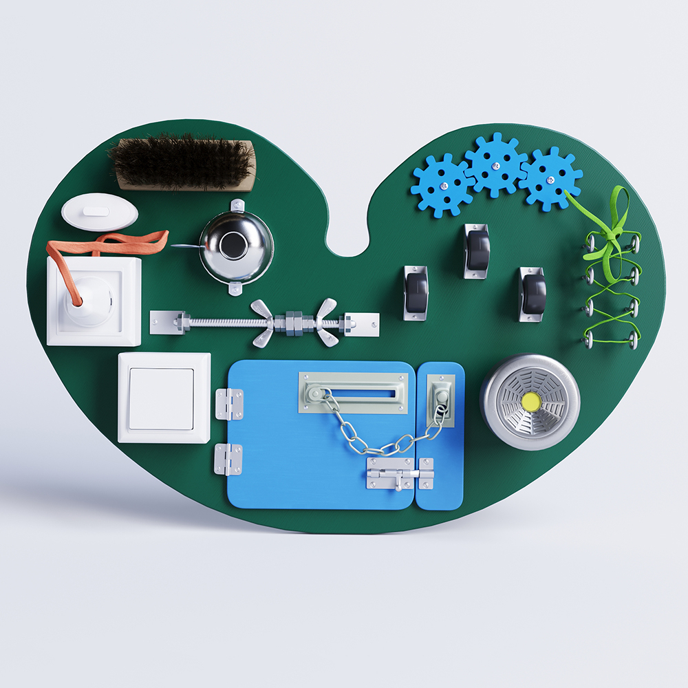 - Расскажите ребенку, как работают элементы бизиборда: открывающиеся дверцы с замками, выключатель, розетка с вилкой. Приведите примеры, где можно встретить подобные элементы в жизни. Таким образом, малыш становится самостоятельным, а удовлетворяет детское любопытство к бытовым вещам.
