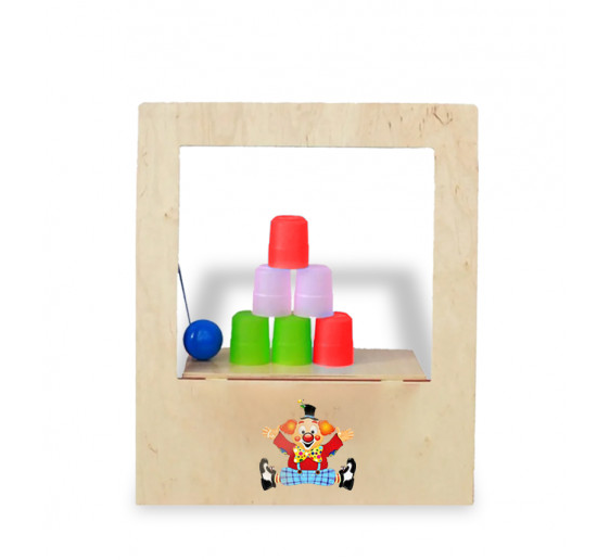 Игровая панель с тиром- это красивая игровая зона, выполненная из качественных материалов. Этот набор напоминает окошко посередине, в котором необходимо пирамидой выстраивать стаканчики. Внизу изображен веселый клоун, который будет рад попаданию шариком по стакану. Игровая панель Тир Клоуна заинтересует как маленьких детей, так и постарше, а родителям поможет сохранить дом в целости и сохранности. Она подойдет для домашнего использование и для специальных учреждений.