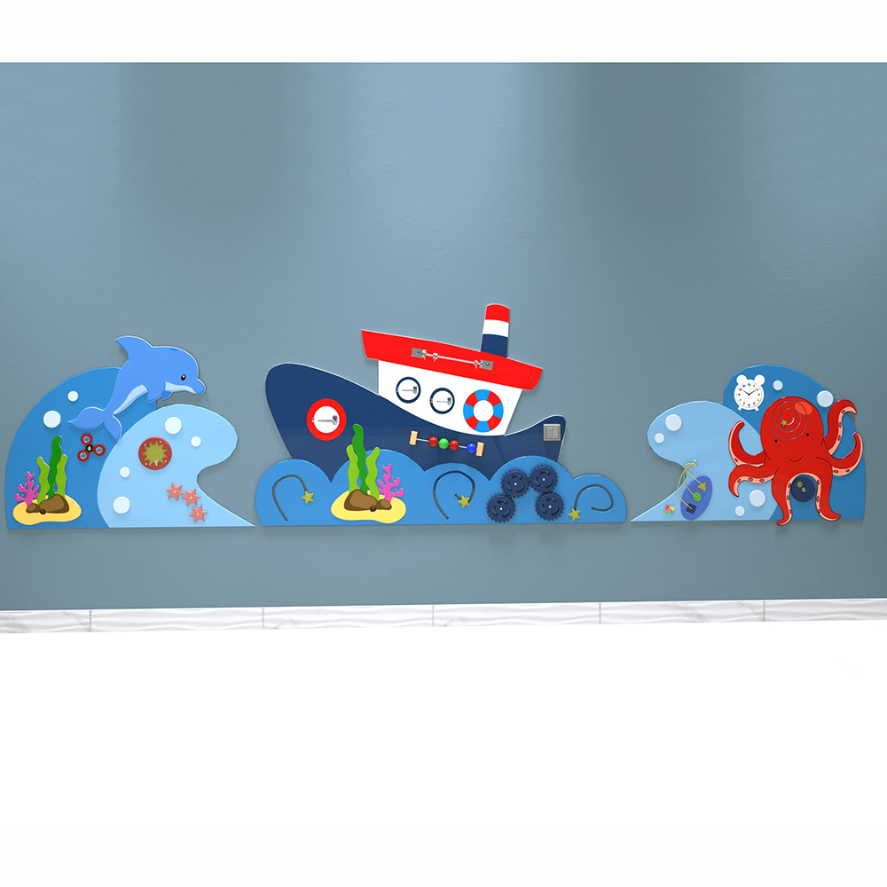 Комплект бизибордов «Морское путешествие» состоит из 3-х бизибордов из ассортимента каталога нашего интернет-магазина, которые удачно дополняют друг друга благодаря схожей морской тематике. Яркие и красочные фигуры морских обитателей привлекут детское внимание, а дополнительные элементы (шнуровка, счёты, дверные крючки и запоры и т.д.) послужат ещё и материалом для развития необходимых полезных навыков у малыша.