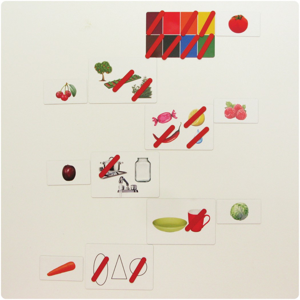 - 20 красных магнитных полосок (6 см х 1 см) для зачеркивания неправильного ответа.