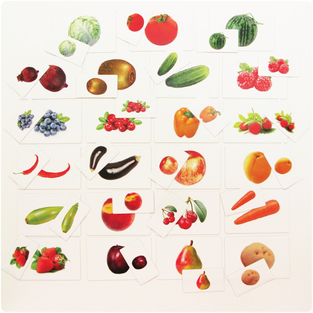Перед началом игры нужно раздать ребятам маленькие карточки с разными плодами (можно по несколько штук) и познакомить их с карточками-схемами.