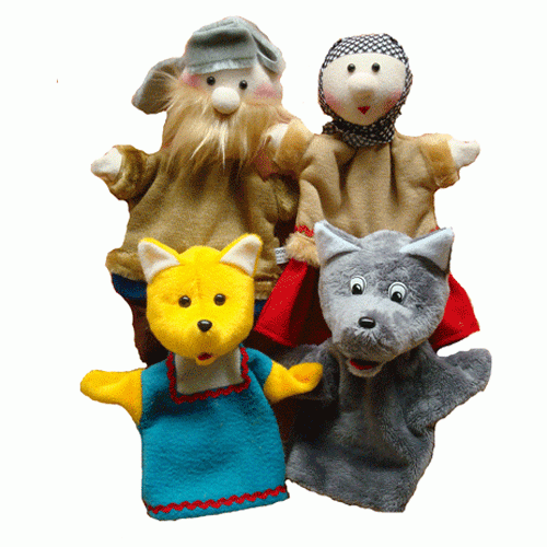 Набор состоит из 4 перчаточных кукол: Лиса, Волк, Дед, Баба.
