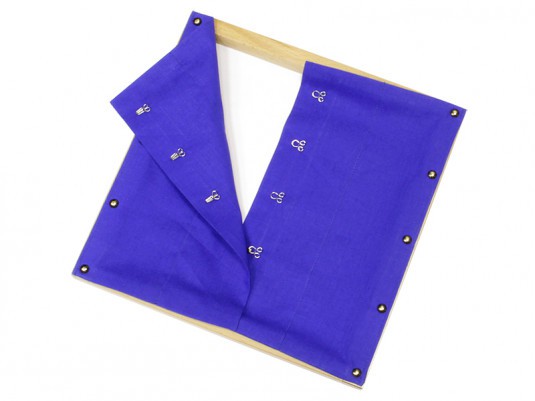 Деревянная рамка с крючками на ткани.