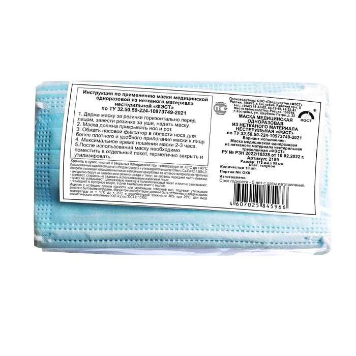 Маска медицинская нестерильная одноразовая (10 штук) - fgospostavki.ru - Иркутск