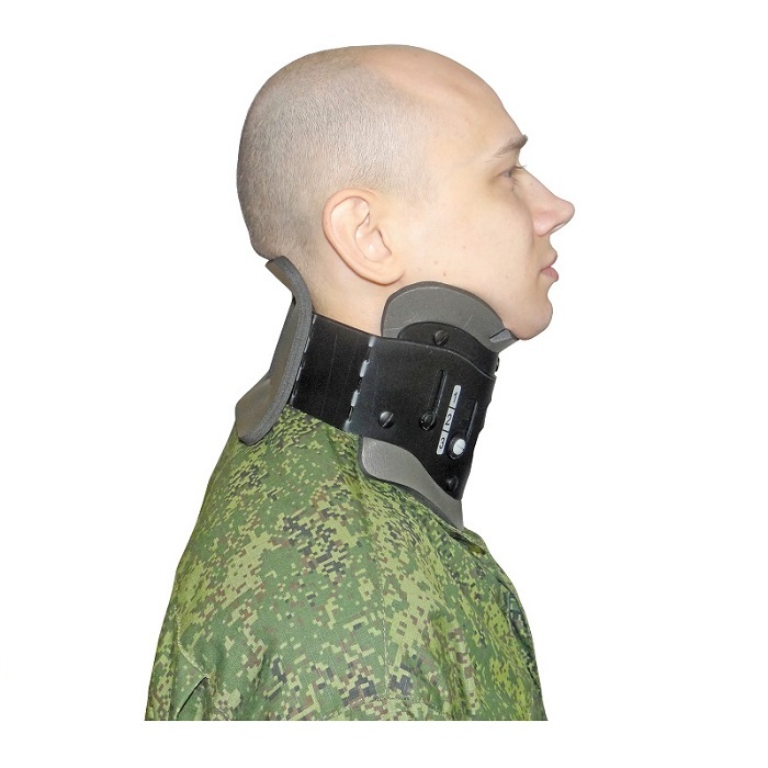 Назначение: для иммобилизации и транспортировки пострадавших с травмами шейного отдела позвоночника. Описание: Шина-воротник представляет собой двухкомпонентную конструкцию, регулируемую как по объему шеи, так и по высоте. Фиксация воротников осуществляется с помощью текстильной застежки.