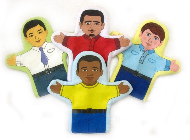 В набор мягких ярких рукавичек входят 4 основные человеческие расы (европеоидная, монголоидная, негроидная, австралоидная). Рисунок нанесен на ткань с помощью печати. Высота рукавичек 22 см и она идеально подойдет как для детской, так и для взрослой руки и с легкостью на нее надевается.