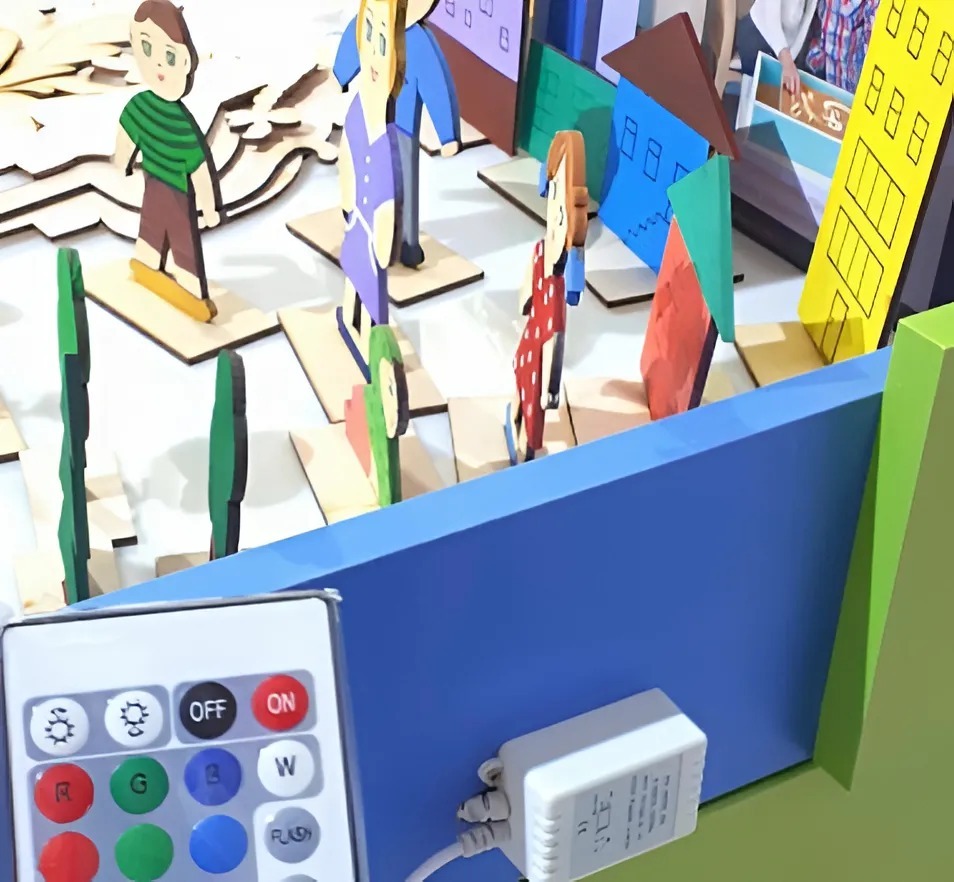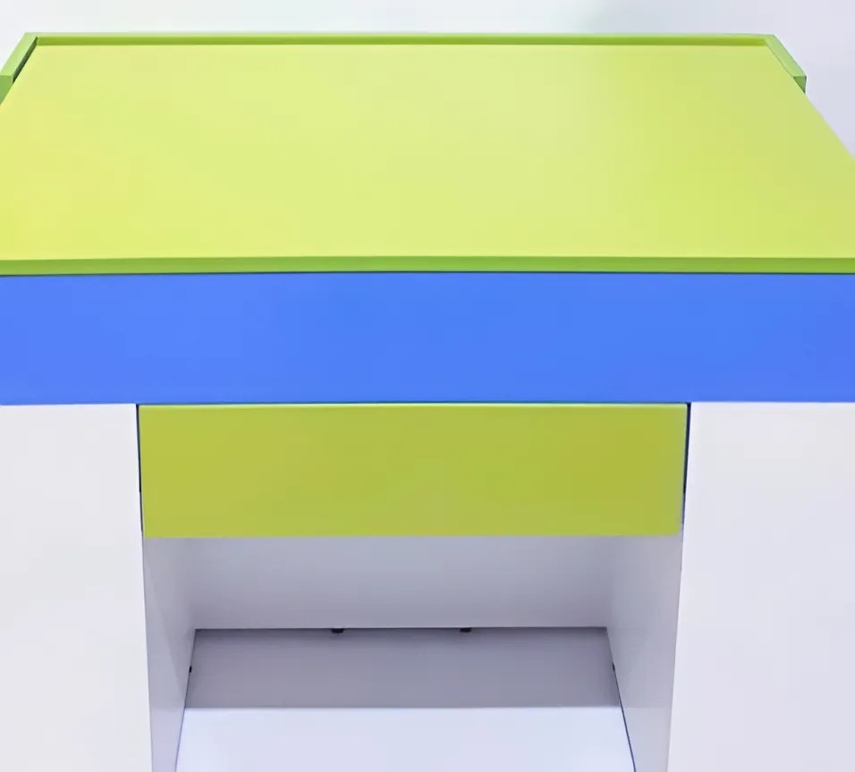 Универсальный модуль для рисования песком, акварелью, театрального, логопедического и психологического развития выполнен в ярких и красочных тонах, чтобы привлечь внимание детей и стимулировать их воображение. Модуль представляет собой целостную нераздельную конструкцию в виде стола со встроенной светодиодной подсветкой. Подсветка имеет функцию переключения цветов и оттенков, что позволяет детям экспериментировать с различными эффектами и создавать уникальные и яркие произведения искусства.