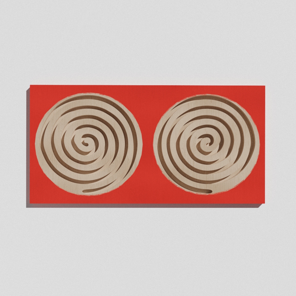 Малышу необходимо взять два бегунка и установить в лабиринте. Сначала двигать кружок по маршруту правой, затем только левой рукой, а после двигаться по траектории лабиринта обоими одновременно по часовой стрелке, а потом против. Упражнение помогает сформировать одновременную работу рук, глаз и обоих полушарий.