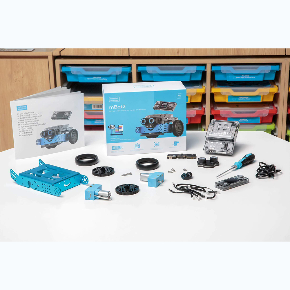 Базовое и продвинутое обучение робототехнике, сетевому взаимодействию роботов, основам интернета вещей (IoT) и искуственного интеллекта (AI). Новая версия робота mBot, с проверенным временем конструктивным решением. Более быстрое и точное движение, встроенные модули связи WiFi и Bluetooth, встроенный АКБ. Съемный контроллер для изучения визуального программирования и программирования на Python. Набор mBot2 разработан для учащихся средней школы и может быть рекомендован как в возрасте 10 лет, так и старшеклассникам.