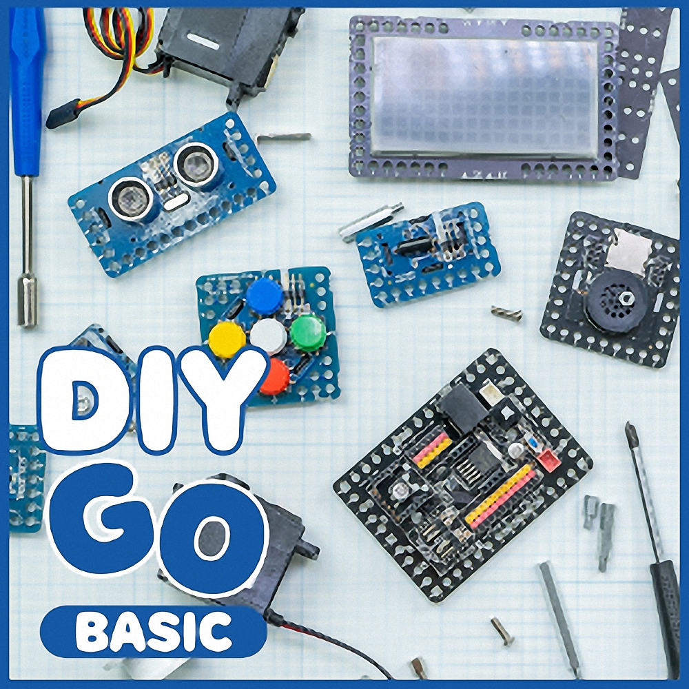 Новинка от компании Roborobo  - DIYGO Basic (DIY — аббревиатура английского Do It Yourself, то есть — сделай сам). Базовая версия новой серии RoboKit. DIY GO.  Позволяет собрать 6 конструкций, которые помогут изучить работу различных электронных устройств, а именно: плату центрального процессора, светодиодную плату, ИК-датчик, датчик касания, ультразвуковой датчик, сервомотор, наборный диск и пьезо-зуммер.
