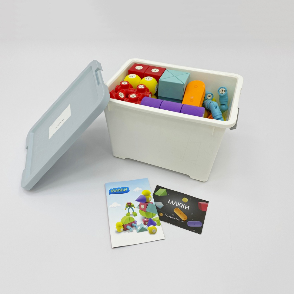 Конструктор «МАККИ 120» — набор цветных магнитных деталей (крупных геометрических фигур с магнитными креплениями), рассчитанный на группу учеников до 16 человек.
