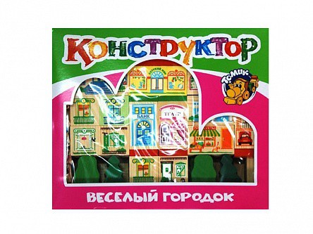 Конструктор представляет собой набор деревянных деталей в виде различных элементов ландшафта и объектов архитектуры города.
