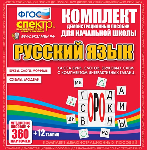Динамические раздаточные пособия. Русский язык (комплект демонстрационных материалов). Касса букв, слогов, звуковых схем с набором интерактивных таблиц.