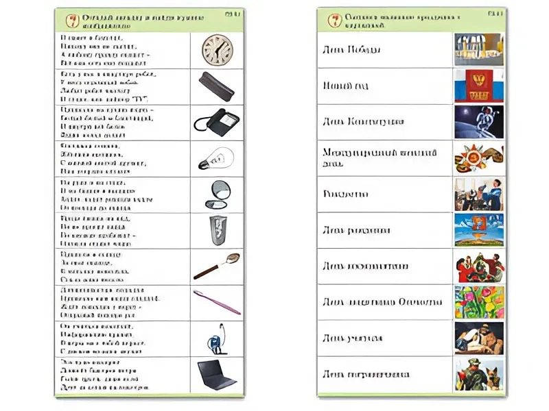 Пособие состоит из 10 полноцветных карточек, ламинированных пленкой. Карточки снабжены маркировкой, где буква обозначает предмет, первая цифра – код темы, вторая цифра – порядковый номер (тему) карточки в серии, последняя цифра – вариант (I или II)