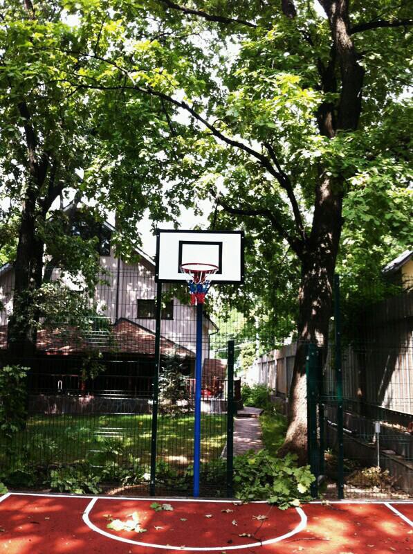 Стойка баскетбольная Г-образная стационарная устанавливается на уличных площадках - спортивных, дворовых, школьных и других.