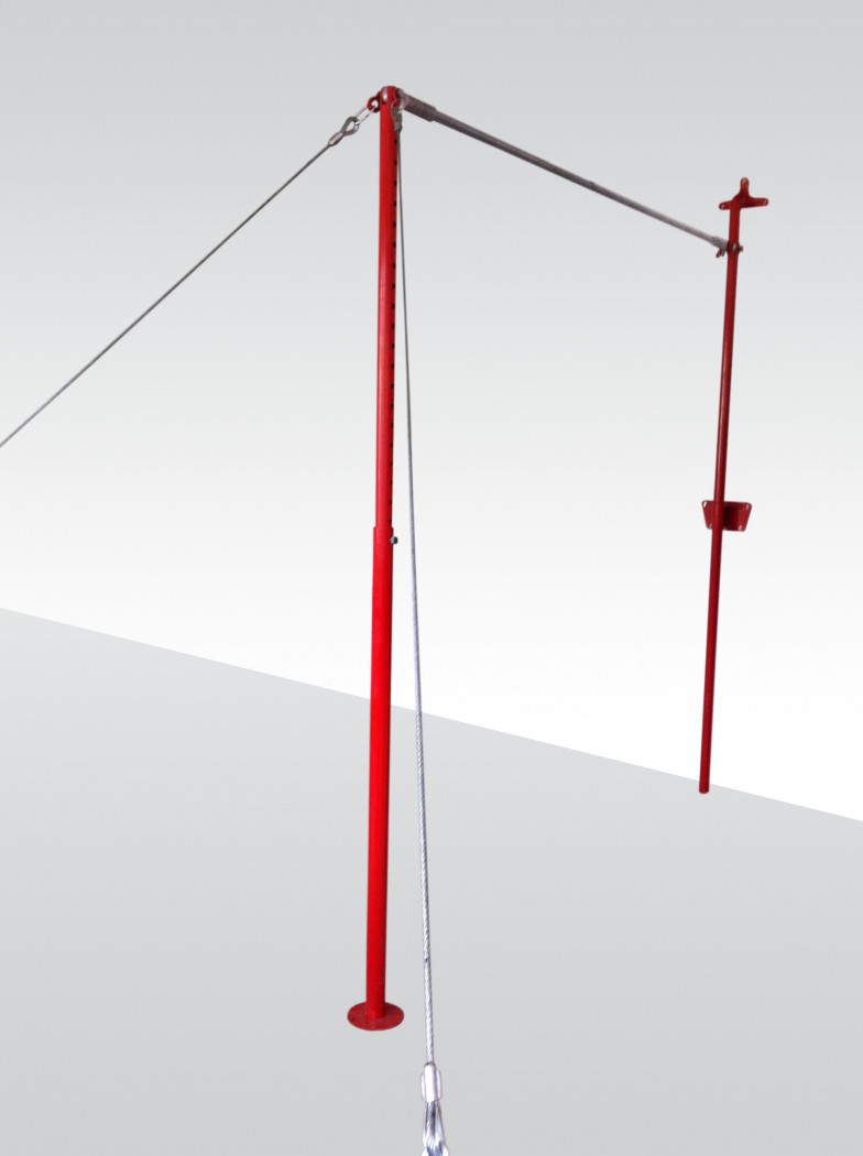 Одна стойка при помощи растяжек крепится к полу, другая анкерными болтами к стене.