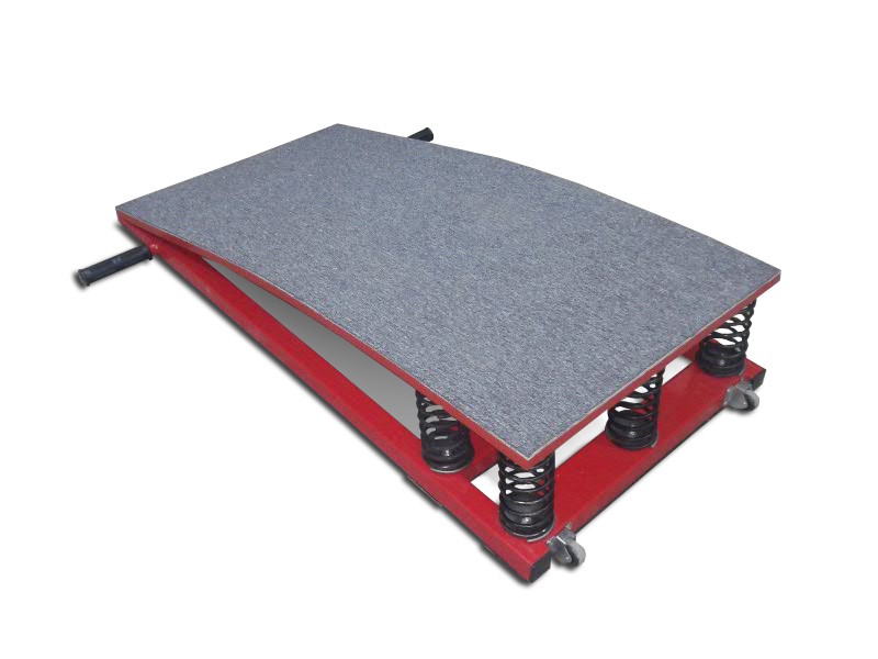 Представляет собой сборную конструкцию, состоящую из верхней площадки(фанера 15мм) и металлического основания, 6ти стальных амортизирующих пружин, вставленных между верхней и нижней поверхностью мостика, обеспечивающих высокий отскок и прочность. Площадка имеет ковровое покрытие, препятствующее скольжение ног во время выполнения прыжков.