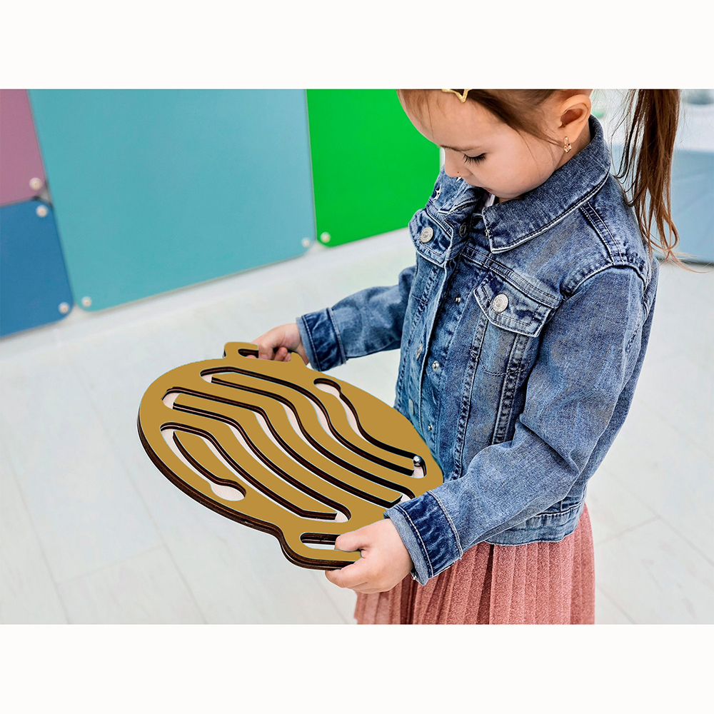 Это игровой тренажёр для развития мозга и координации движений. На круглой доске с двумя ручками по бокам выполнен лабиринт, по которому нужно прокатить шарик с помощью согласованных движений рук.