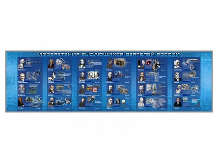 Главная Каталог Стенды Холлы и коридоры Настенное полотно "Изобретения выдающихся деятелей России" (10000 х 3000 мм)