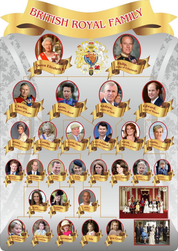 Яркий, развёрнутый резной стенд из пластика с фотопечатью знакомит нас с главными британскими монархами и их приближенными, внимание – с обозначениями титулов!
